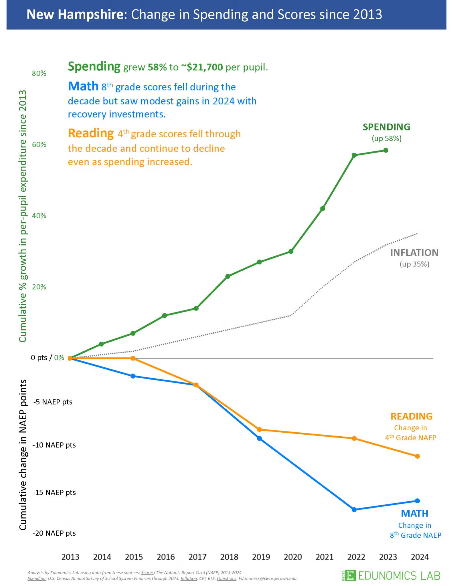 - More than half of New Hampshire’s students are falling below grade-level standards in reading, writing, and math.